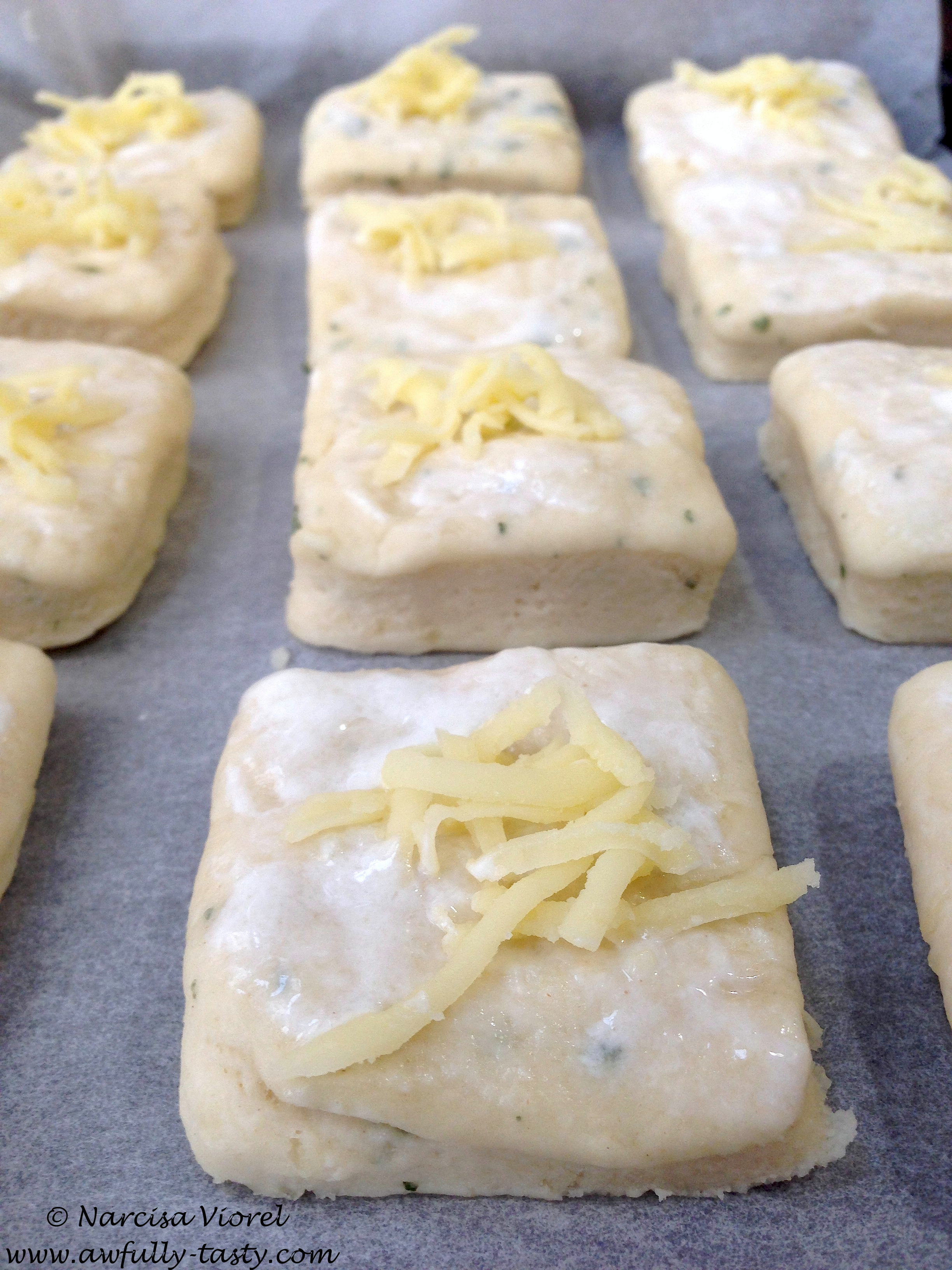 Sau un fel de pâinici cu salvie și cașcaval. Sunt foarte bune calde, cu unt și cu o cană de lapte sau ceai, alături de un iaurt sau chiar cu salată de vinete 🙂
