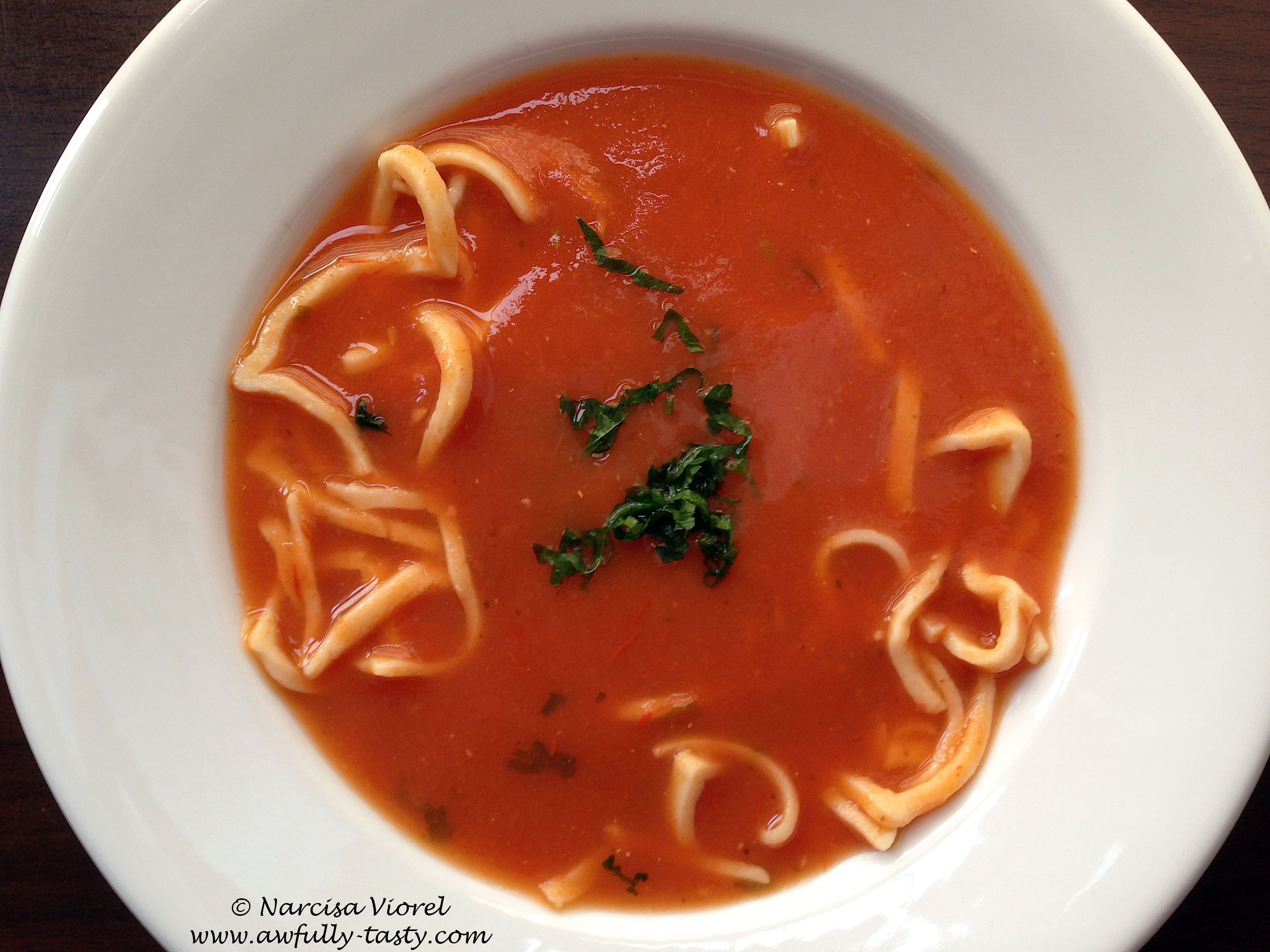 O supă simplă și bună! Are o culoare frumoasă, un gust intens, mie îmi place foarte mult! O gătesc destul de des, uneori schimbând verdețurile folosite, adică mărar, pătrunjel, cimbru sau busuioc.