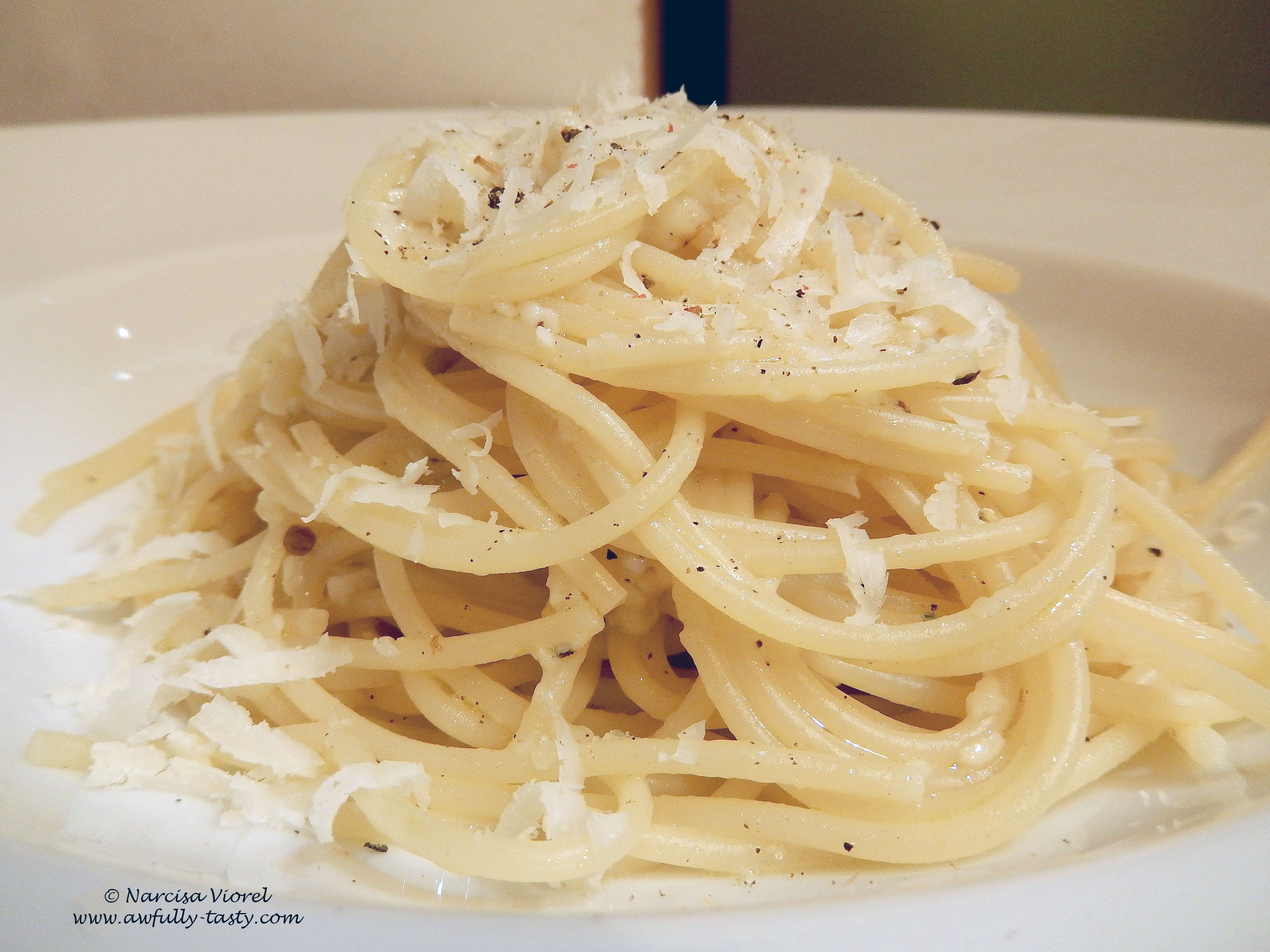 Se fierb pastele în apă clocotită cu sare al dente. Se scurg și se pun într-un bol. Peste ele se adaugă Pecorino, piper, ulei și puțină apă în care au fiert pentru a nu se usca. Se mănâncă imediat, alături de un pahar de vin roșu. Gata în 10 minute 🙂 Sursa