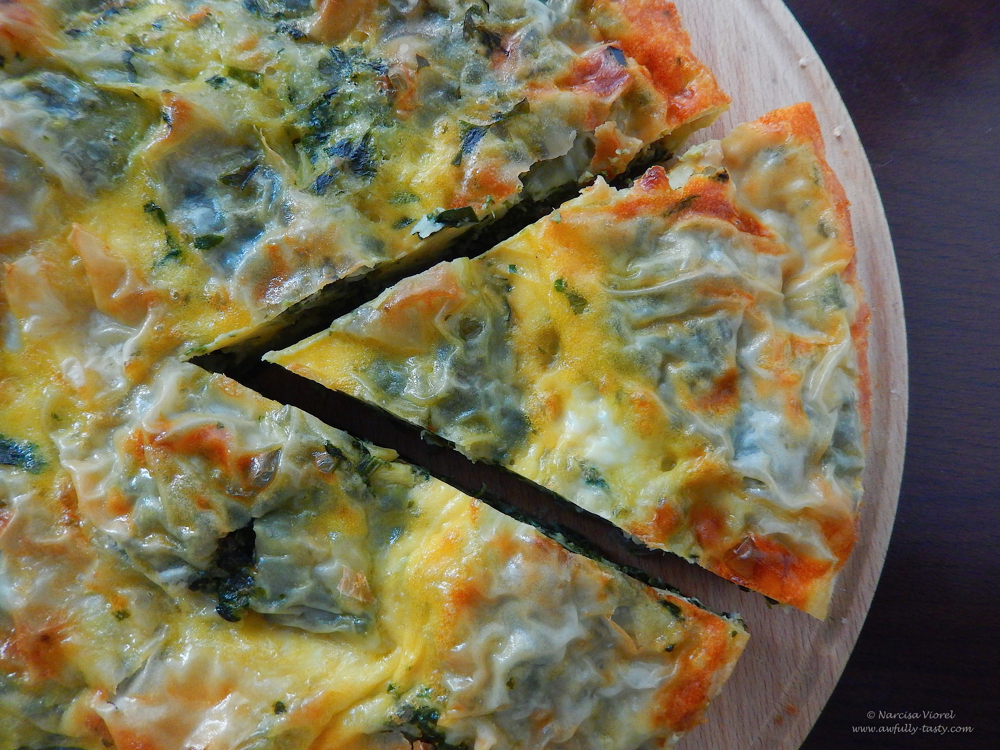 O tartă plină de bunătăți! Leurdă, spanac, ceapă verde, cremoasă ca o budincă, foarte bună!