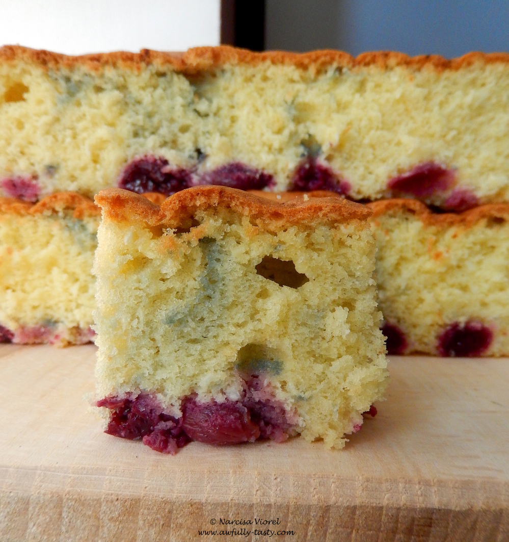 Prăjitură simplă cu cireșe și nucă de cocos, pufoasă, ușor de făcut și mai ales, tare bună! De fapt este asemănătoare cu un pandișpan.