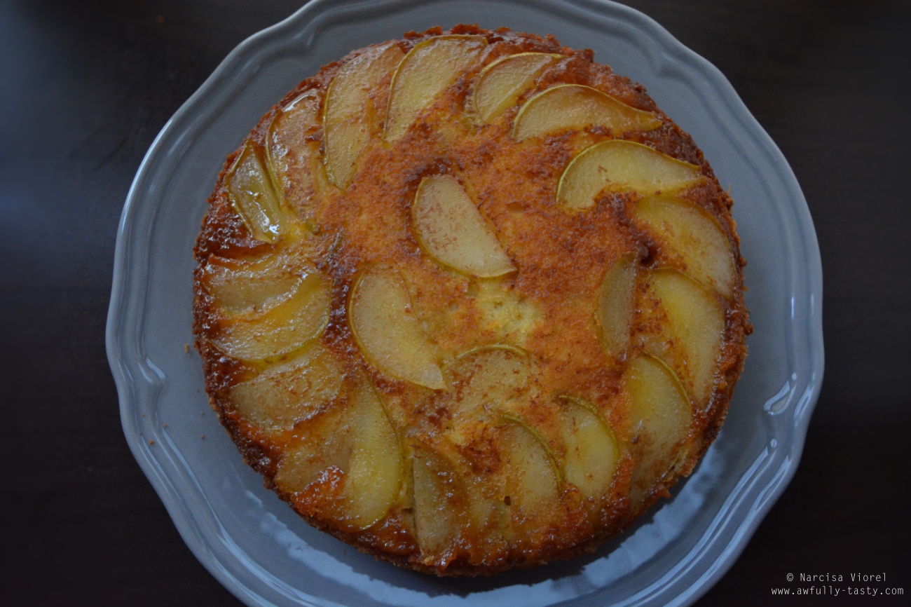 Prăjitură răsturnată cu pere, un blat foarte simplu însă tare fain ca textură! O rețetă adaptată din ”Rose’s Heavenly Cakes”- Rose Levy.