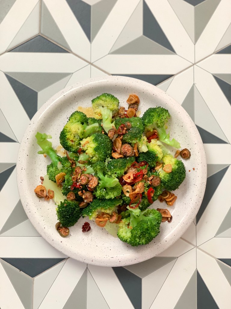 5. Turnați peste broccoli cu tot cu ulei, asezonați cu puțină sare și piper.