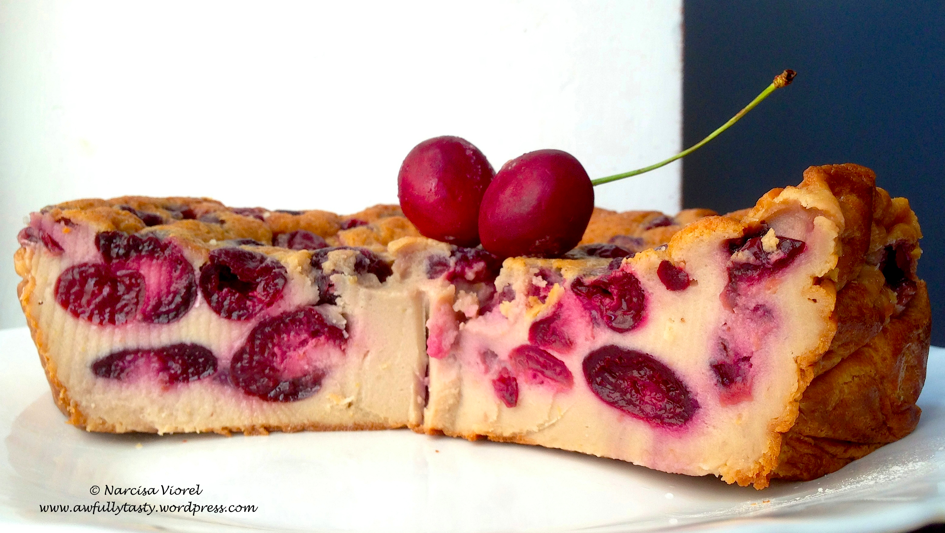 Plăcintă cu cireșe și scorțișoară, în varianta vegană. Are un aluat de biscuite sable, foarte fraged. E simplu și de executat.