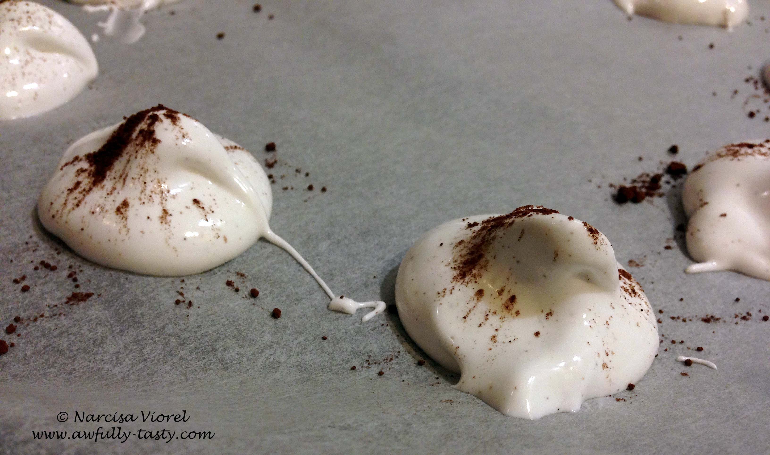 - Avem bezeaua răcită, pe masă, pe hârtie de copt.