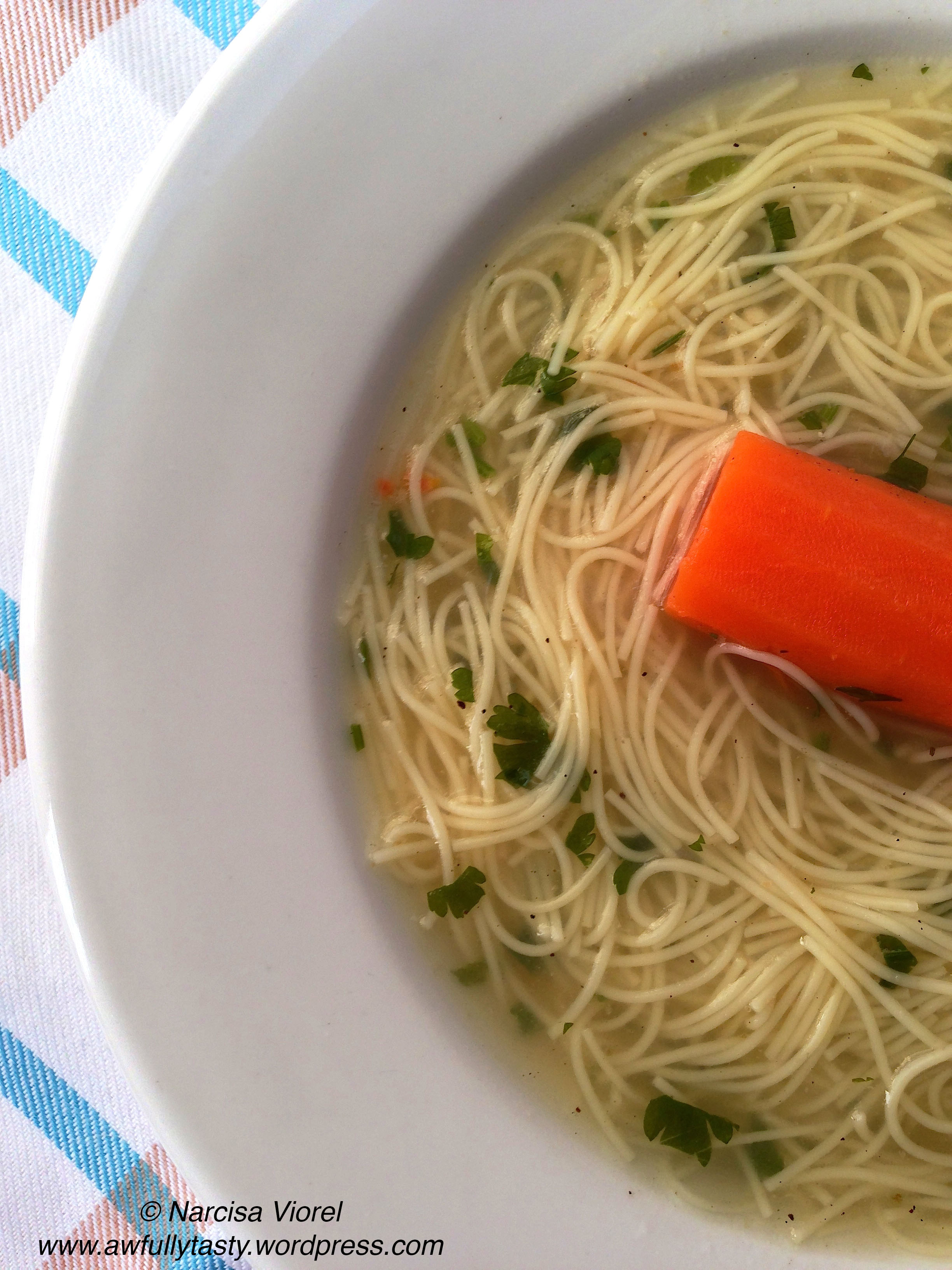 O supă simplă și bună! Are o culoare frumoasă, un gust intens, mie îmi place foarte mult! O gătesc destul de des, uneori schimbând verdețurile folosite, adică mărar, pătrunjel, cimbru sau busuioc.