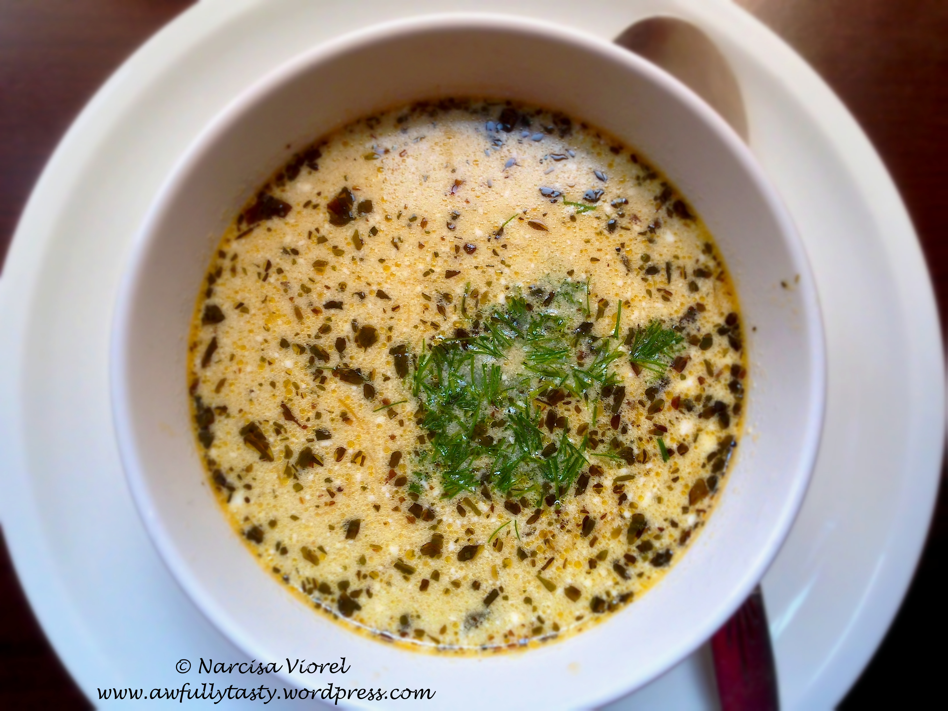 - Mâncăm supa caldă cu un glob de smântână deasupra, piper proaspăt râșnit și pâine crocantă/crutoane.