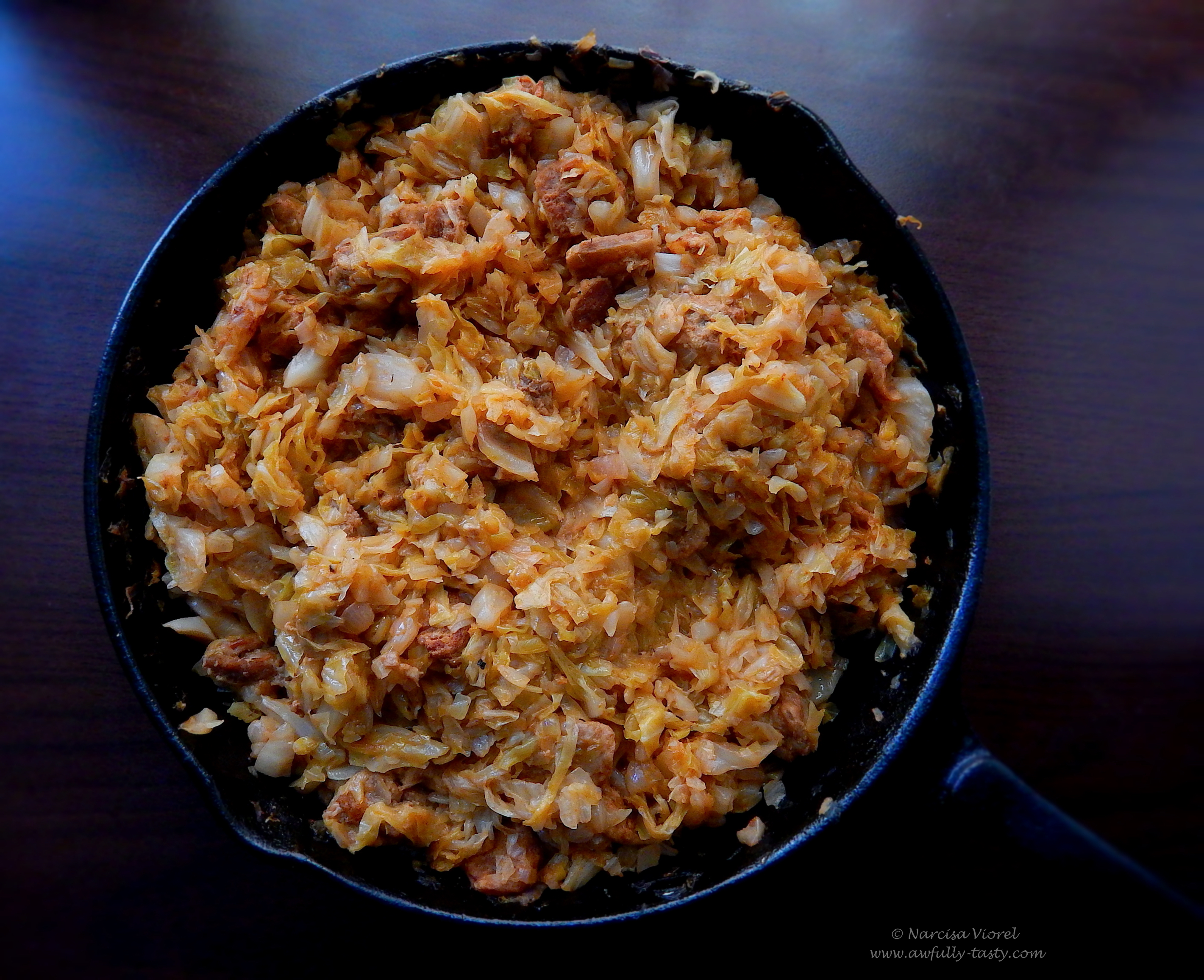 Câteodată îmi e poftă să mănânc o mâncare simplă, cum e asta, fără bătaie de cap, fără ingrediente minune. Varza călită cu sos de roșii este extrem de gustoasă și aromată, e de post și ușor de făcut.